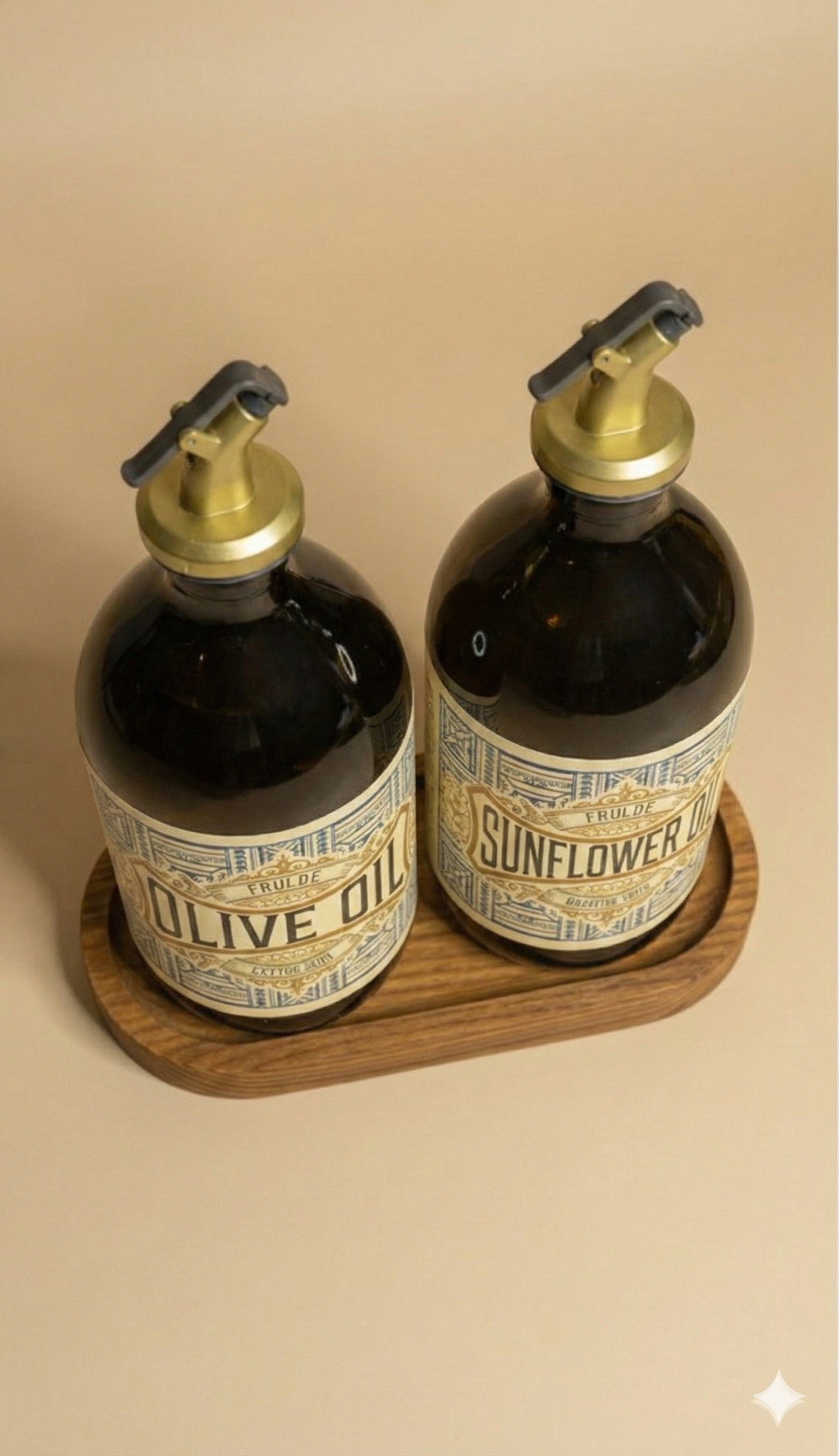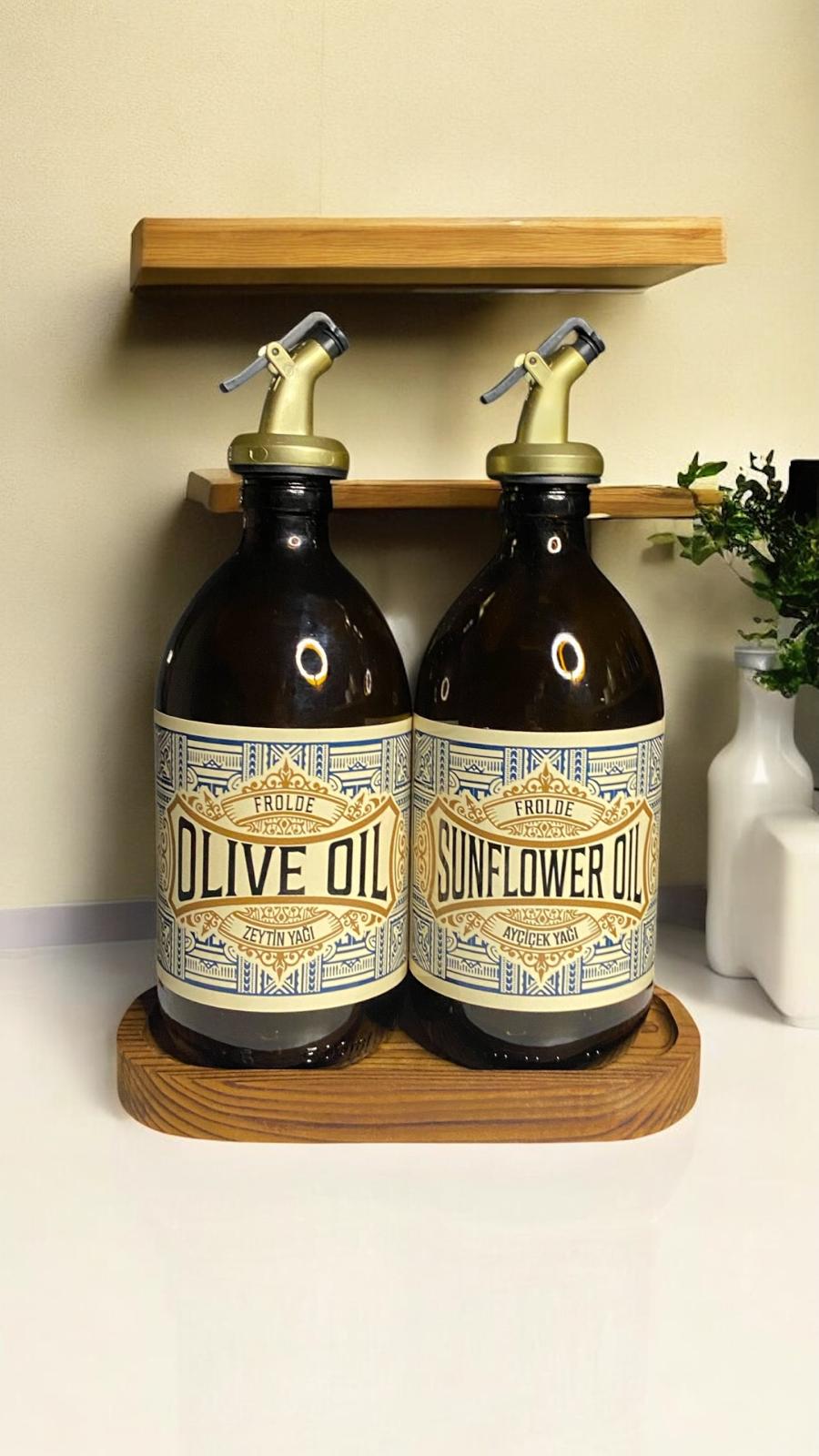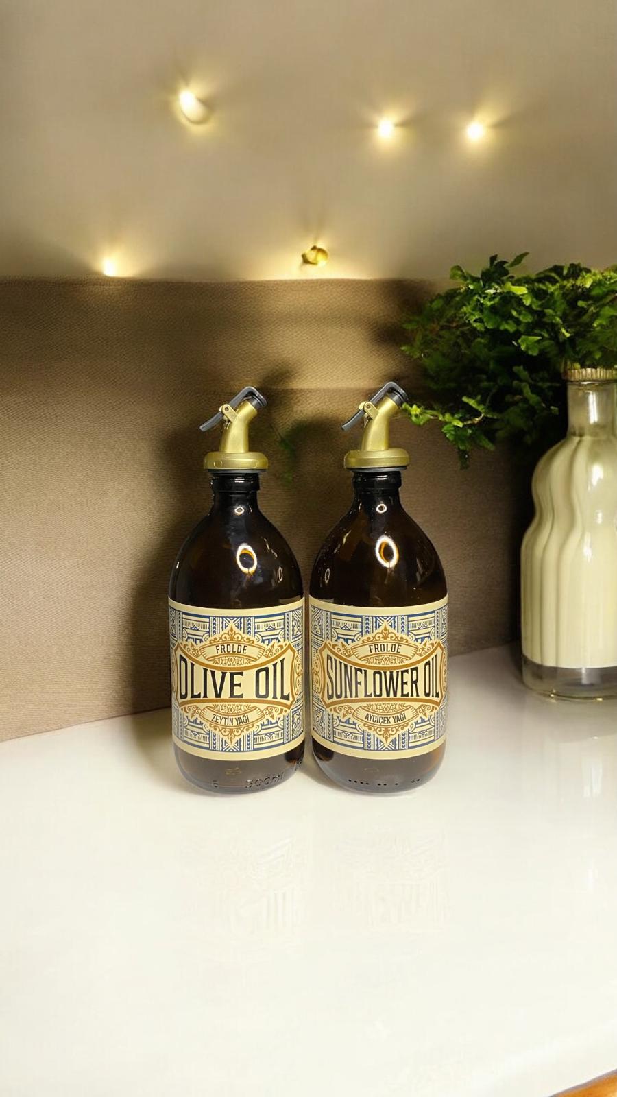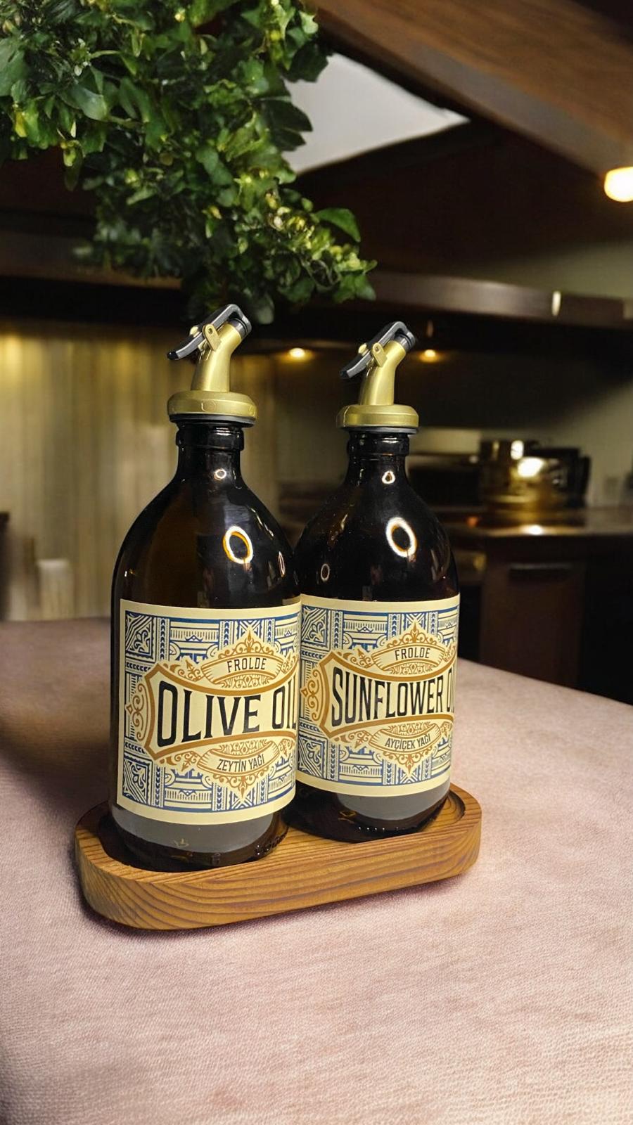 2’li Gold Altın Tıpalı Amber 500 ml Ayçiçek Yağı Zeytinyağı Şişesi Yağdanlık