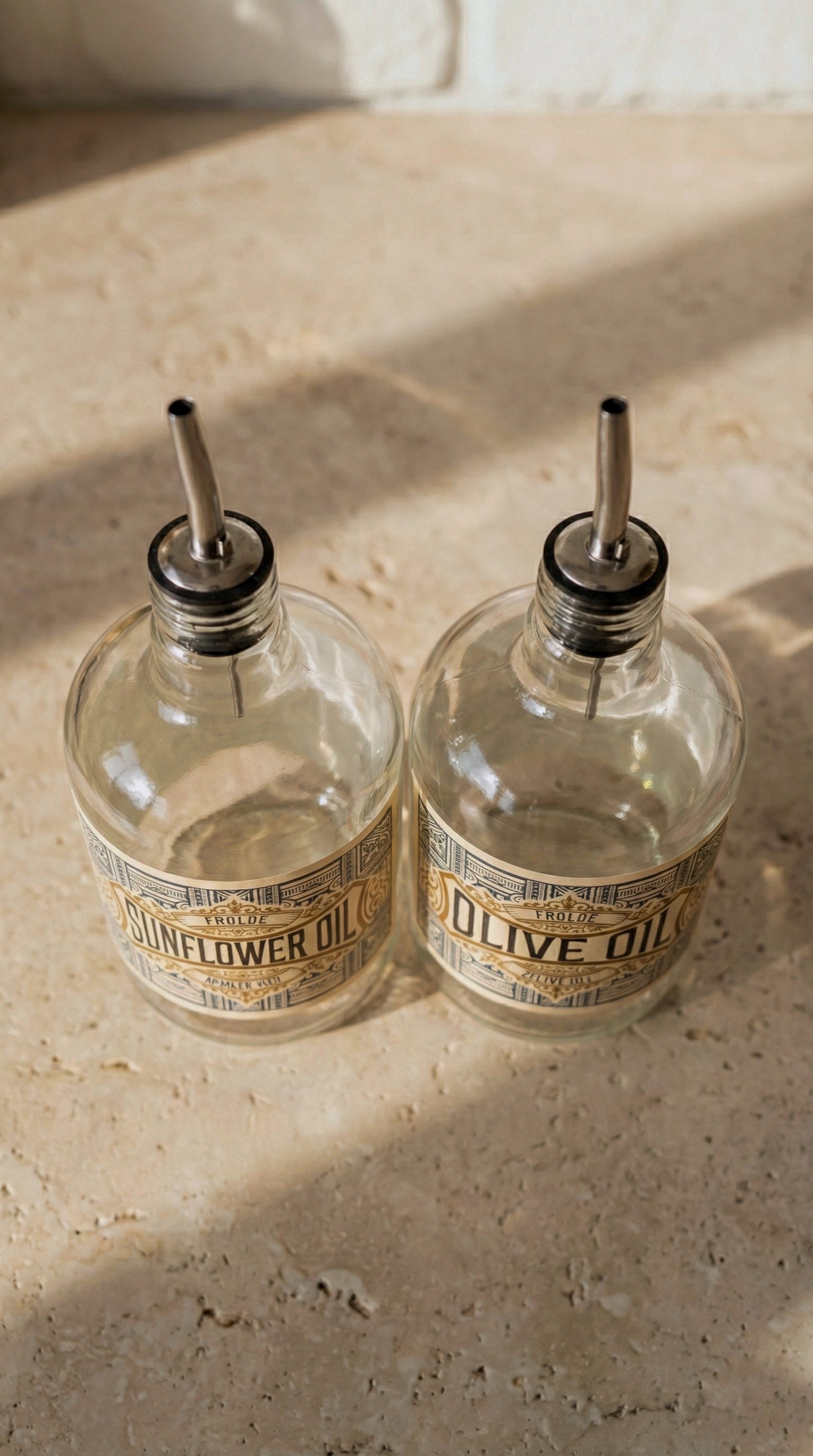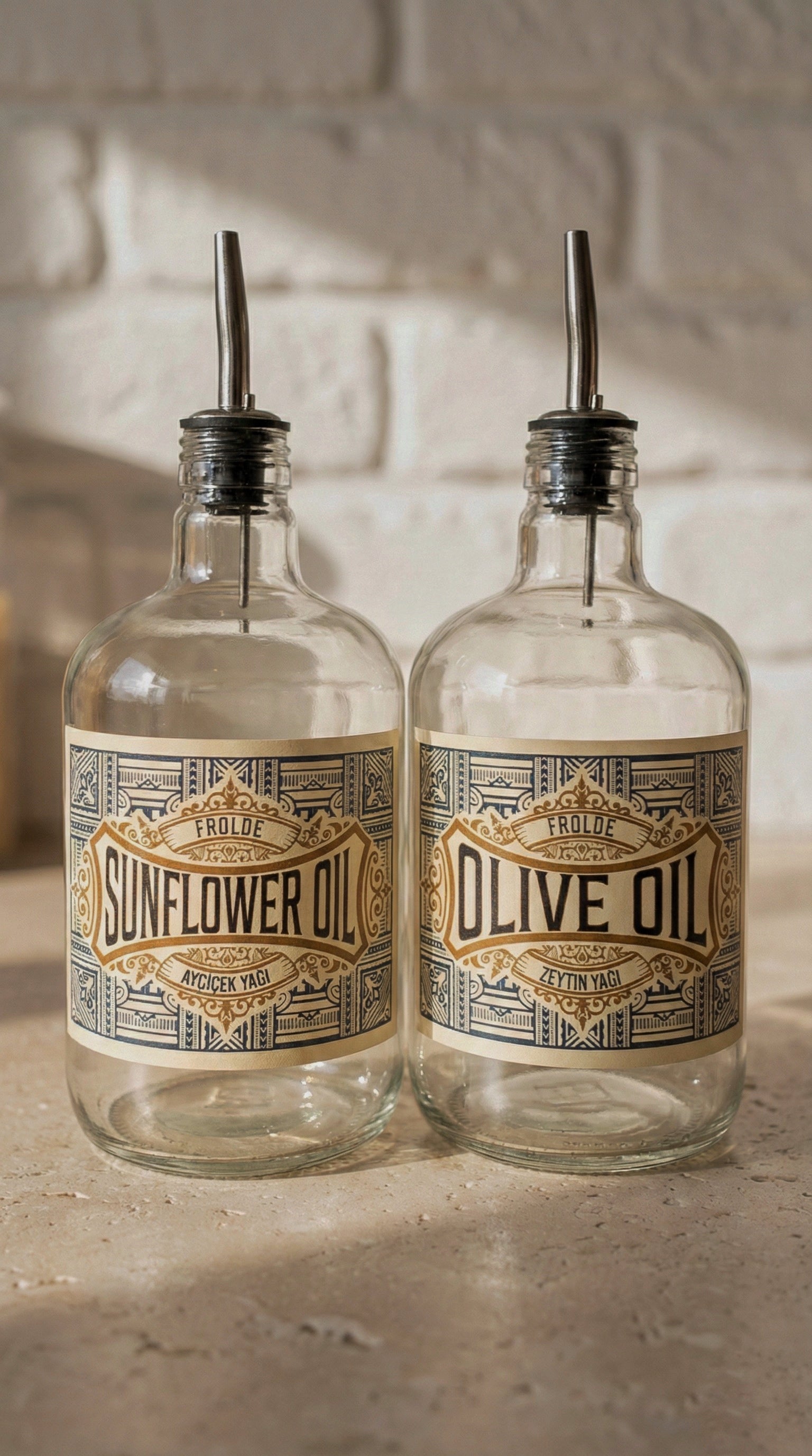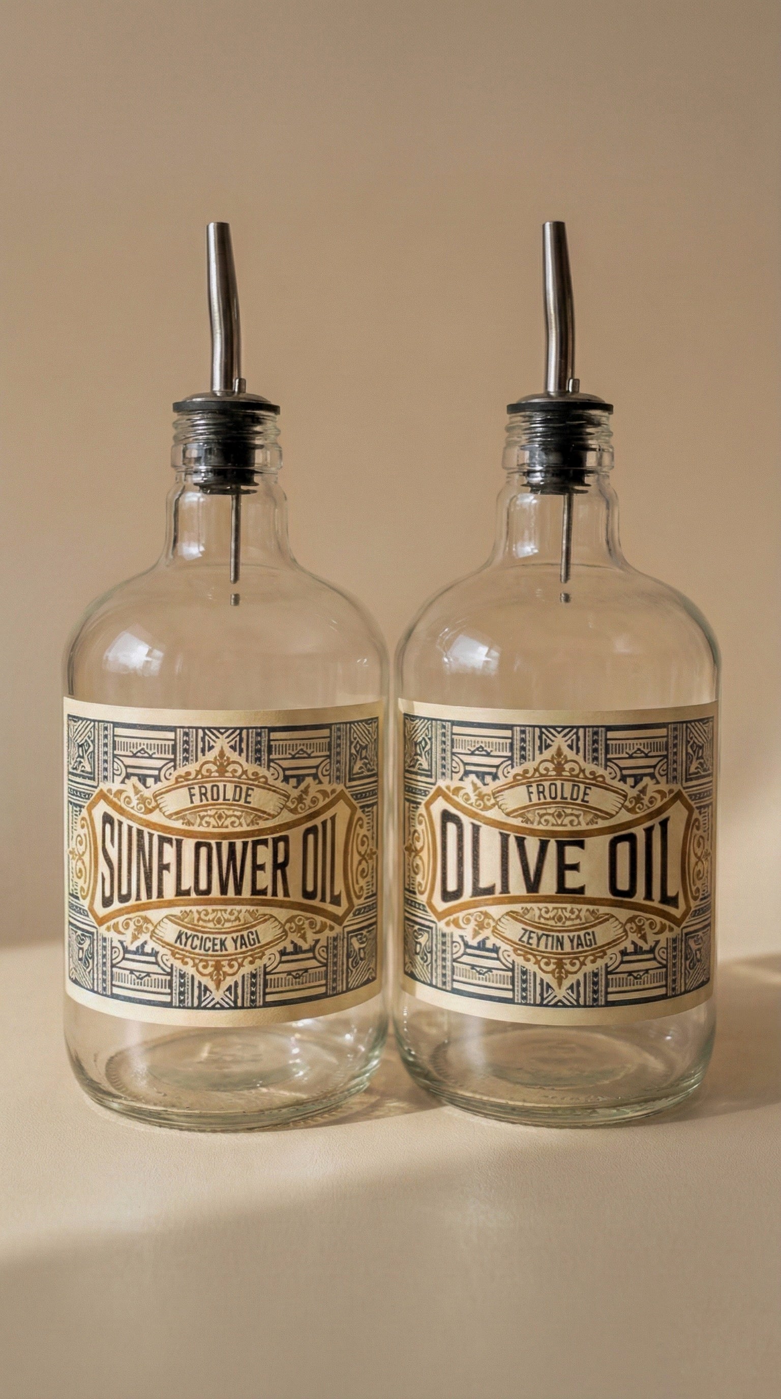 2'li Şeffaf Çelik Tıpalı 750Ml Cam Ayçiçek Yağı Zeytinyağı Şişesi Yağdanlık Vintage Retro
