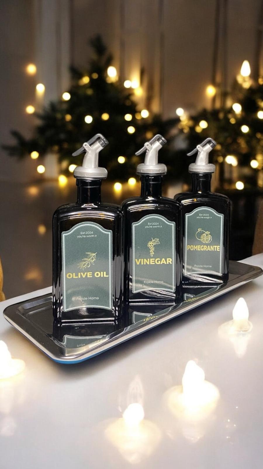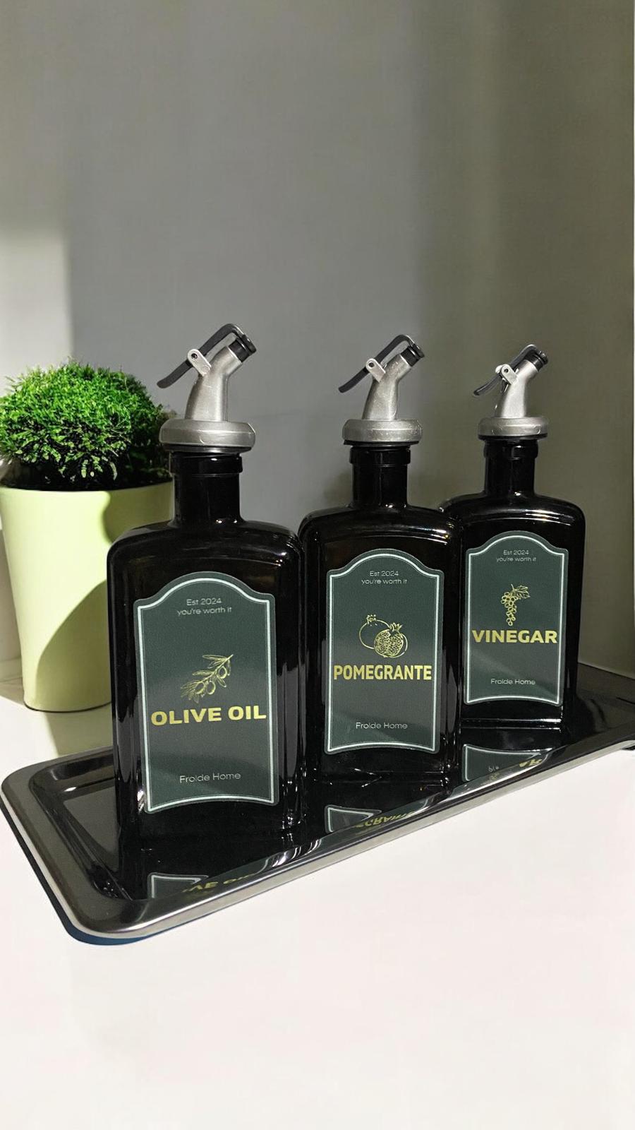 - Amber zeytinyağı, sıvı yağ ve sirke saklama kapasitesine sahip olup, her biri 250 ml hacimde tasarlandı.
