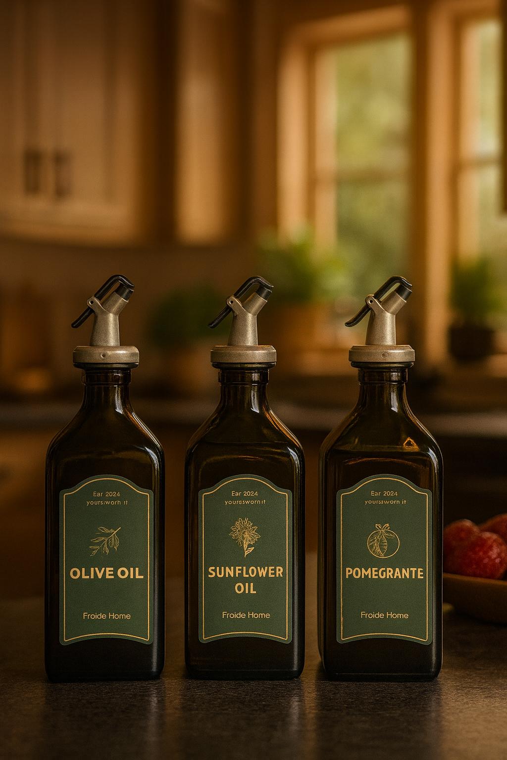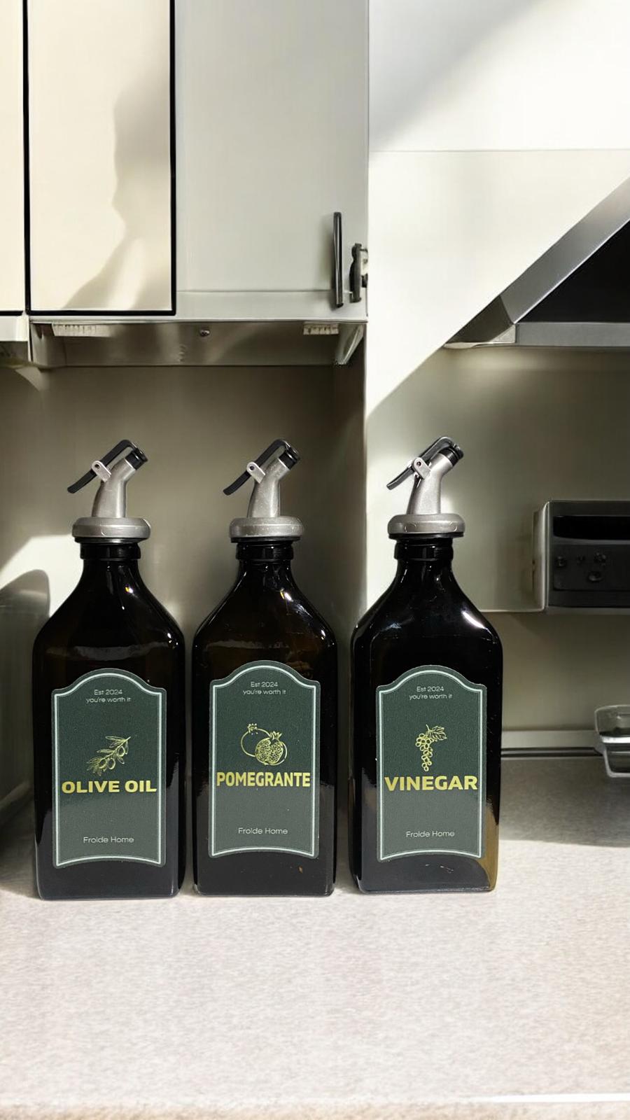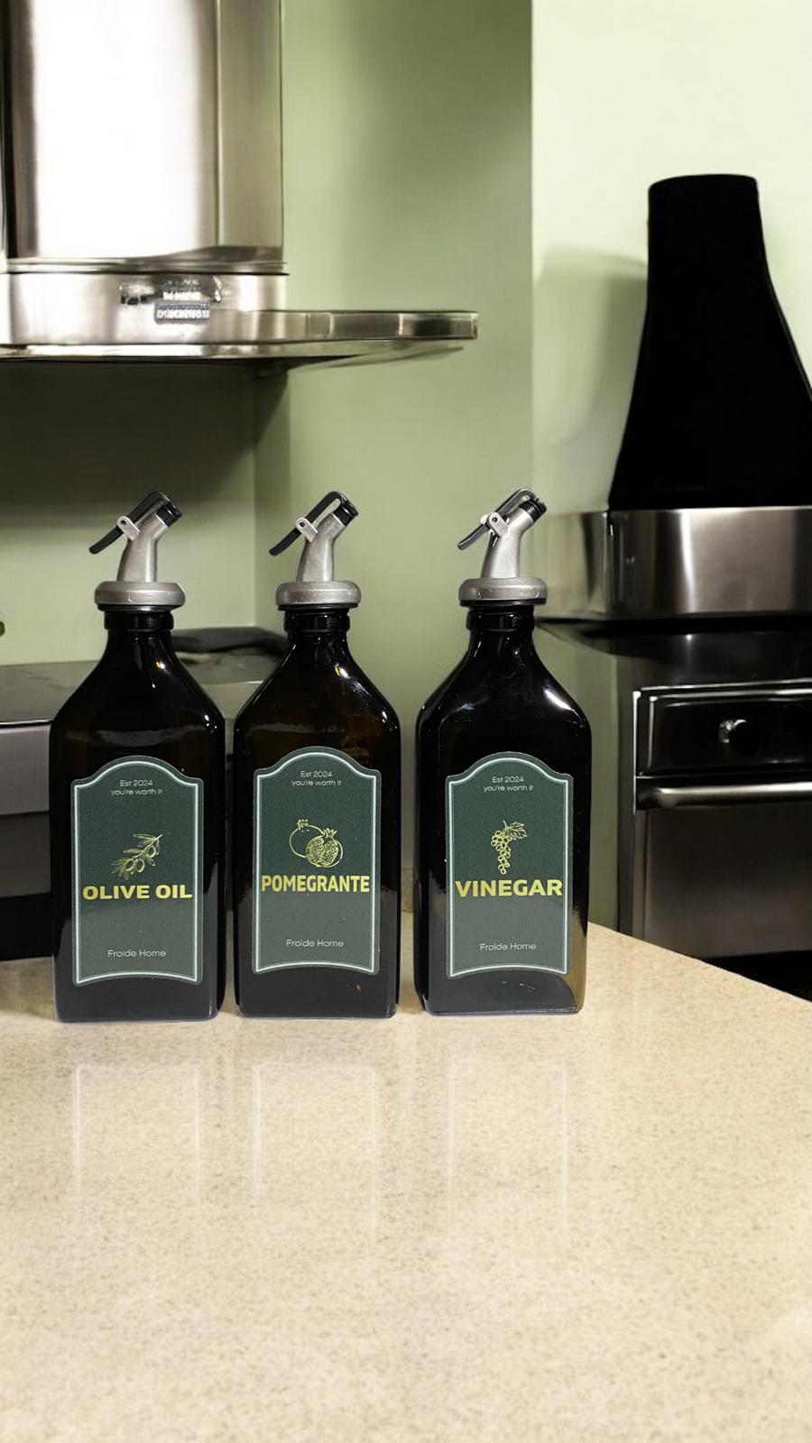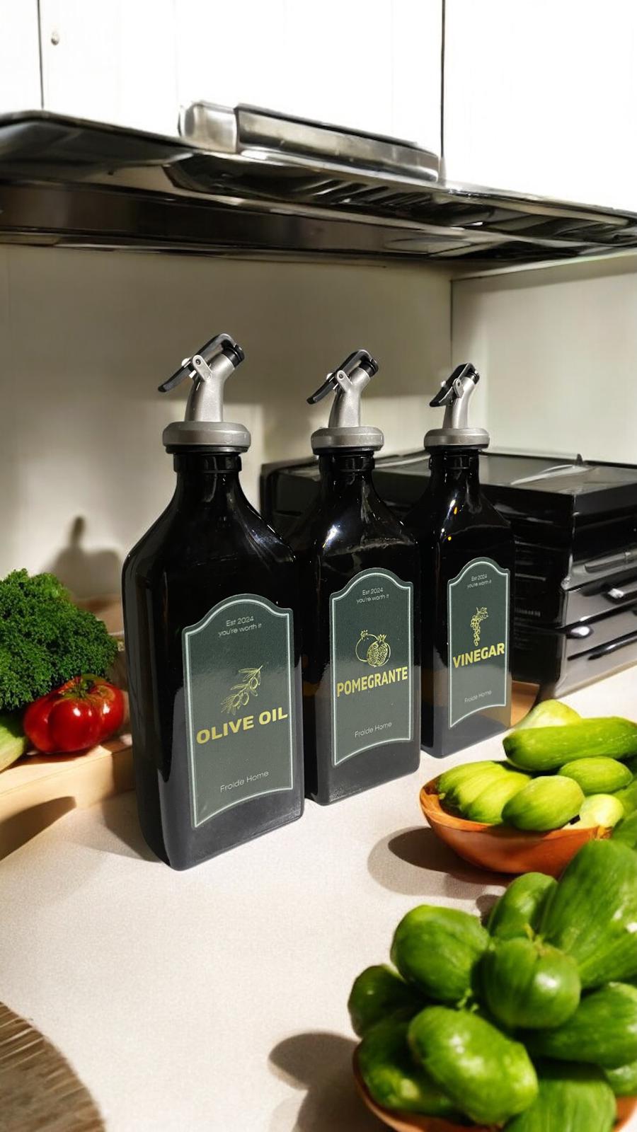 - Amber zeytinyağı, sıvı yağ ve sirke saklama kapasitesine sahip olup, her biri 250 ml hacimde tasarlandı.