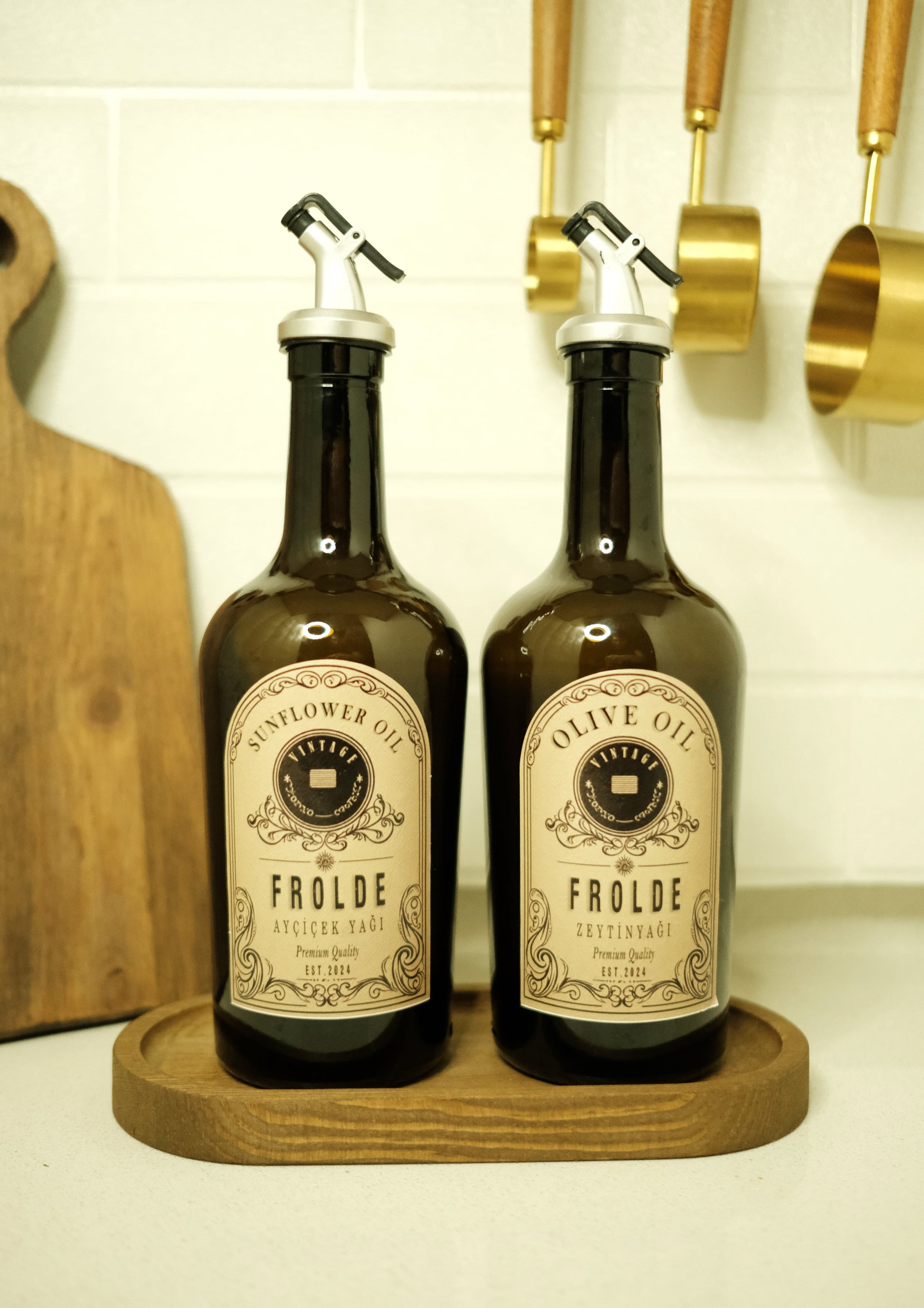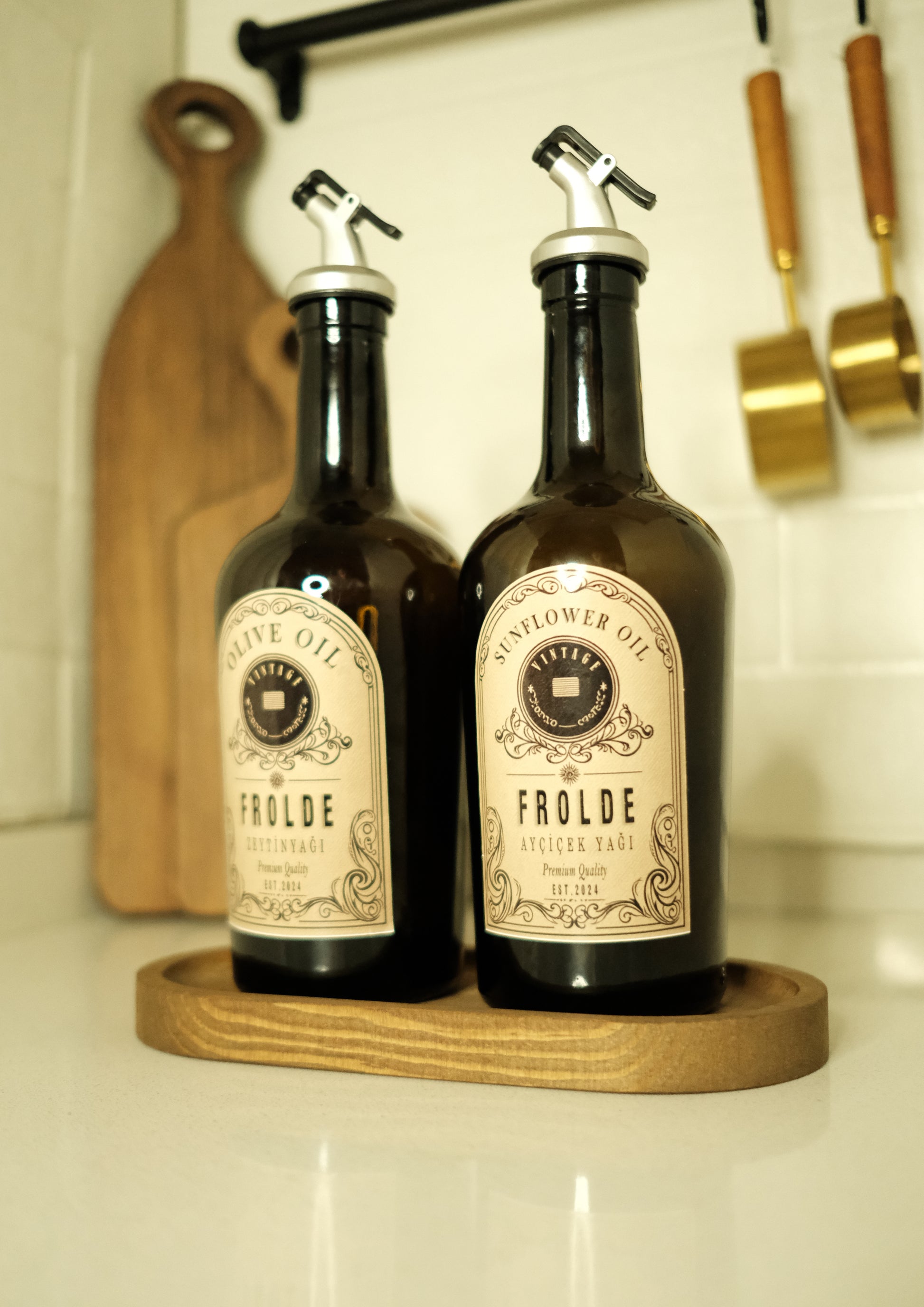 - İki adet amber cam şişe, hem ayçiçek yağını hem de zeytinyağını saklamak için idealdir; böylece farklı yağları kolayca ayırabilirsiniz.
