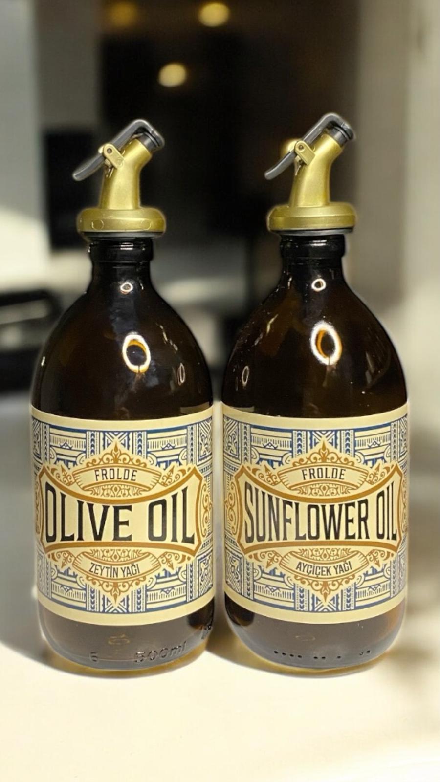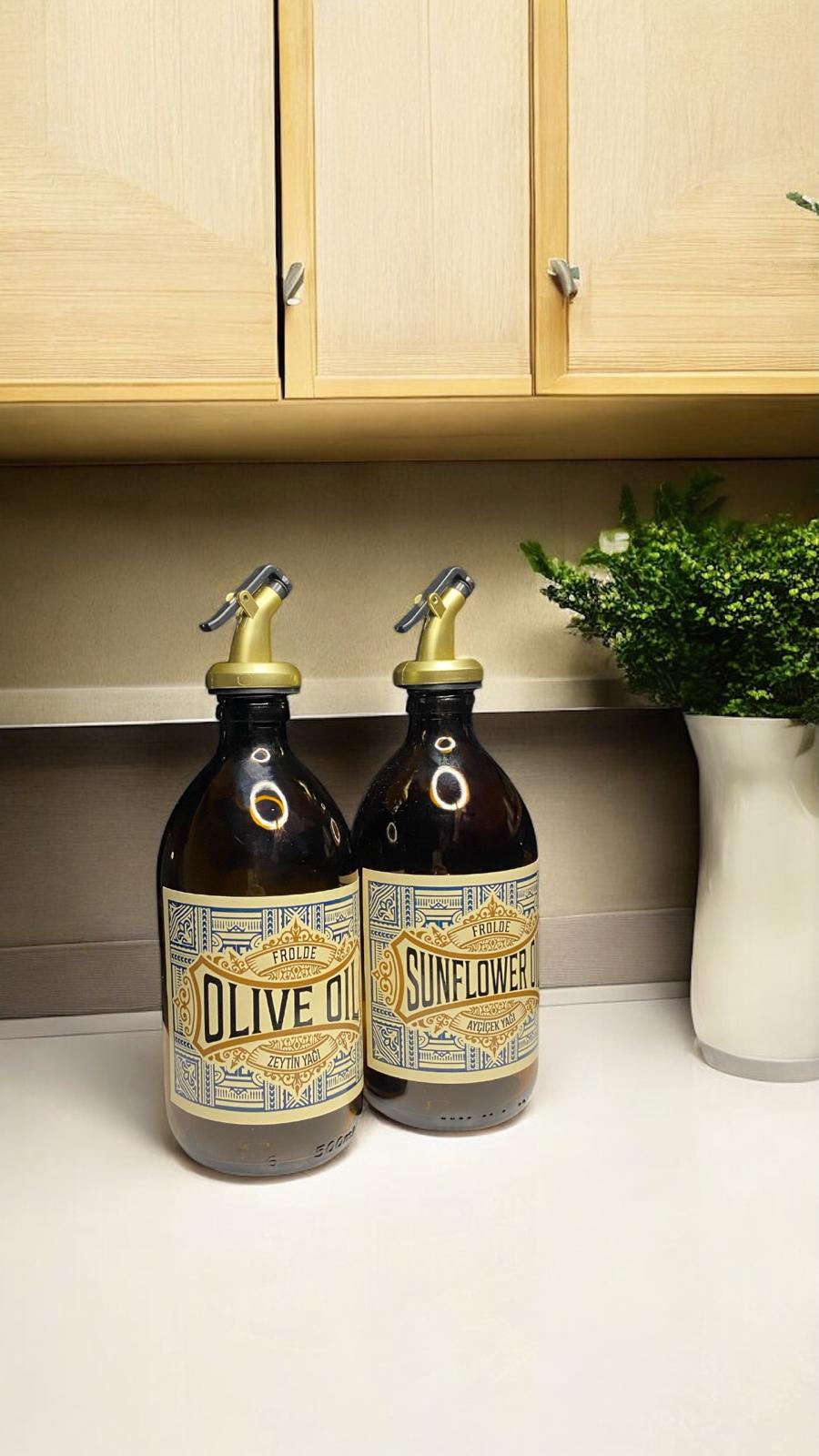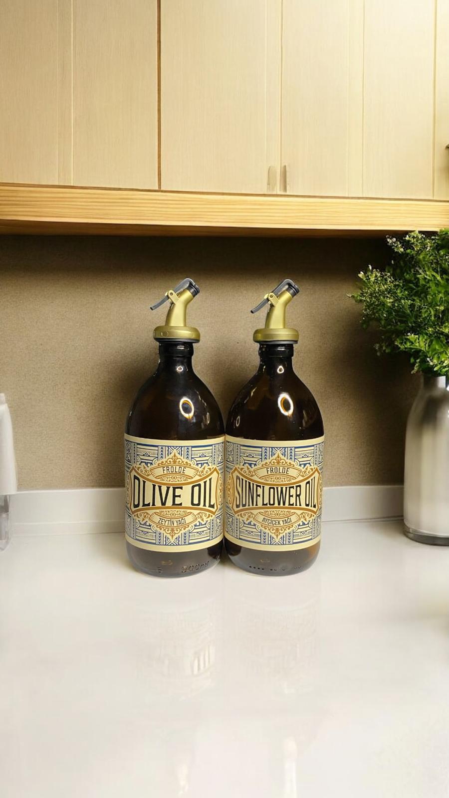 Amber 2’li 500 ml Retro Cam Ayçiçek Yağı Zeytinyağı Yağdanlık Yağlık Vintage