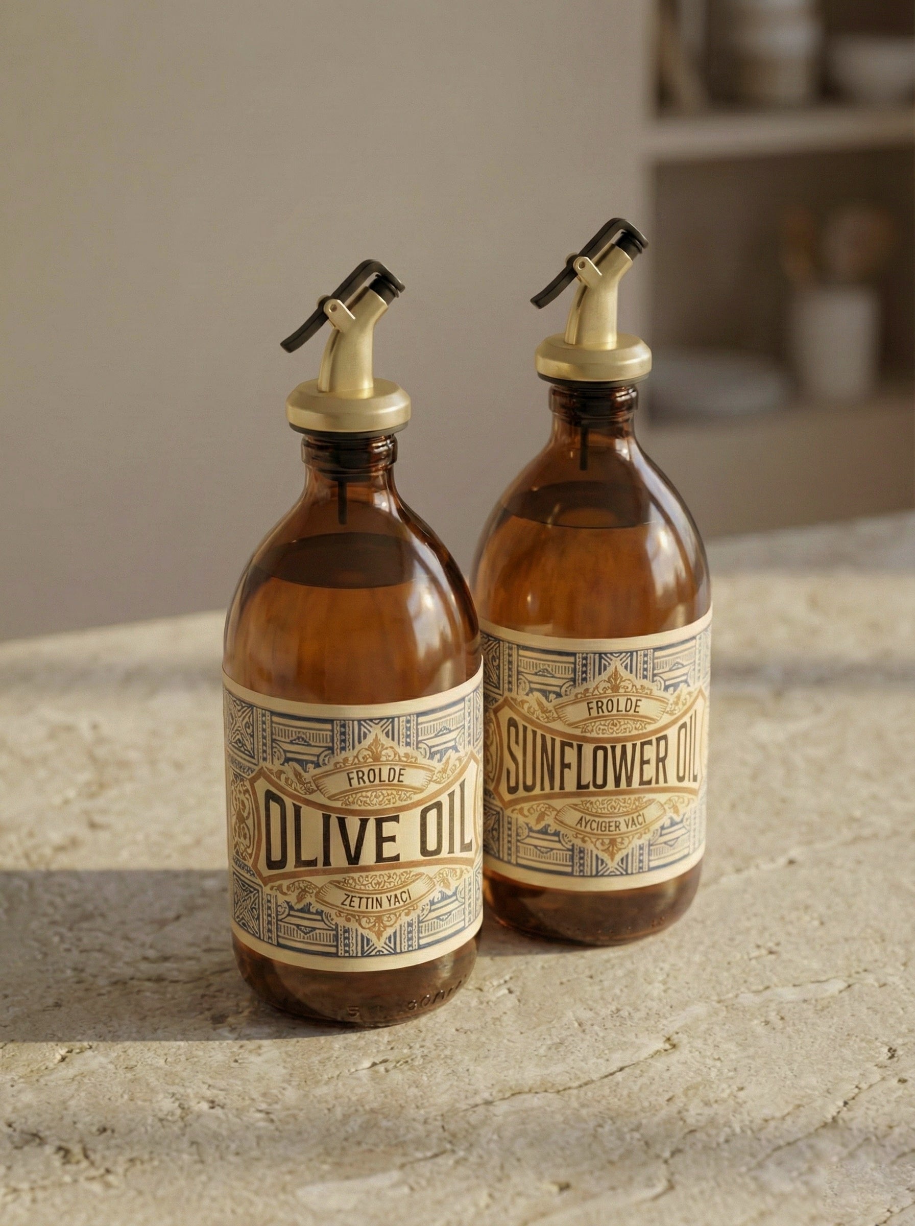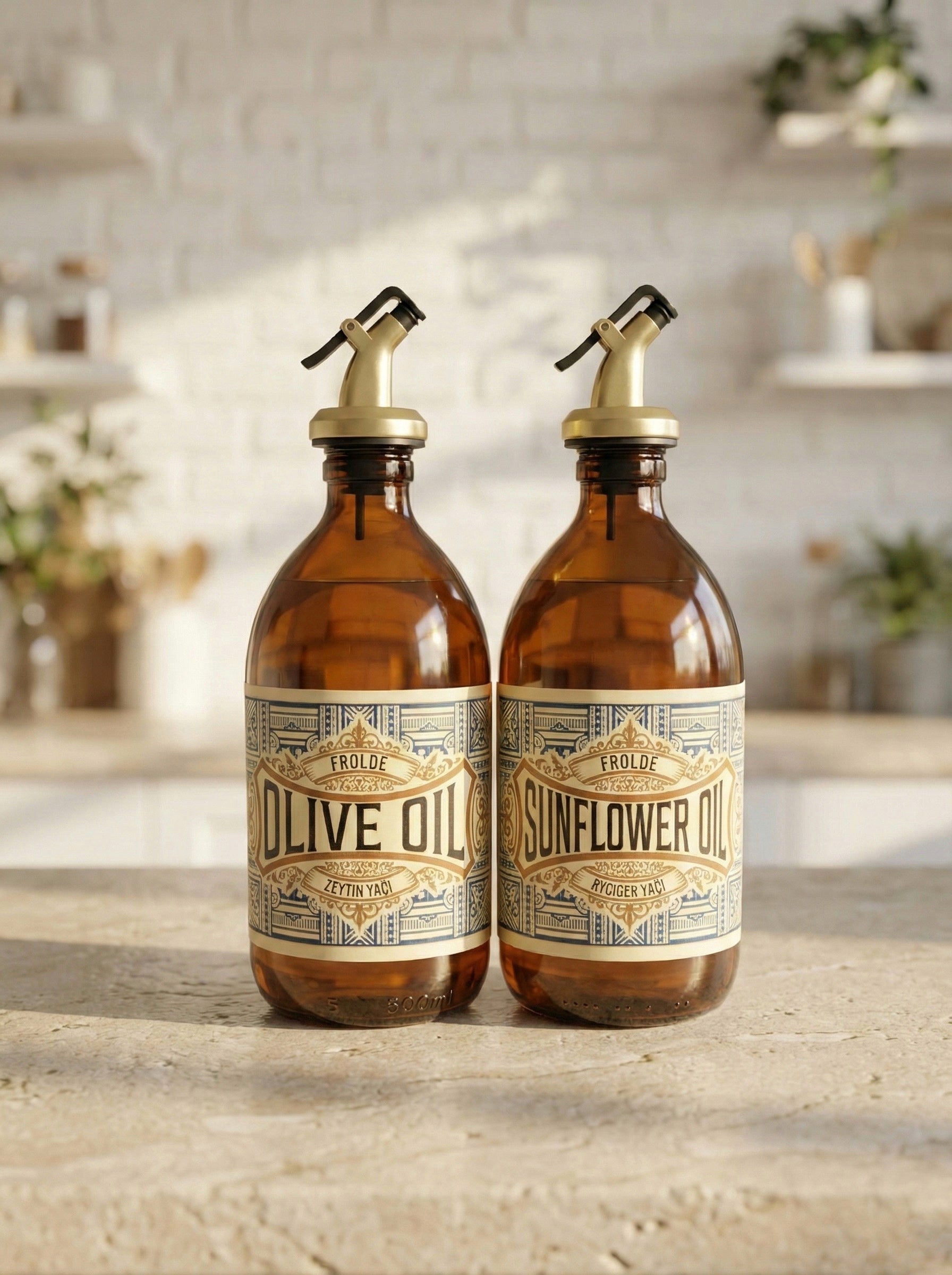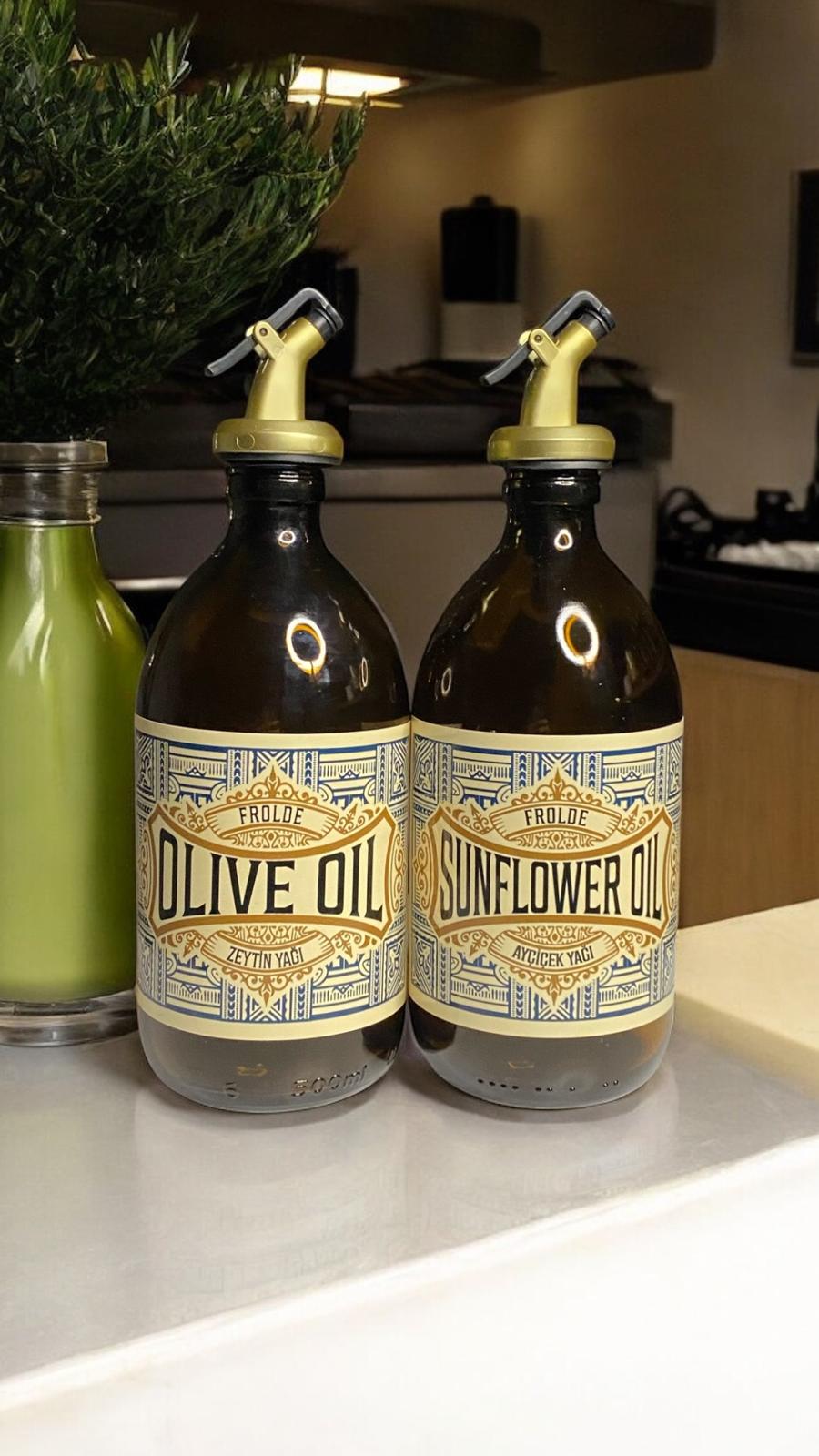 Amber 2’li 500 ml Retro Cam Ayçiçek Yağı Zeytinyağı Yağdanlık Yağlık Vintage